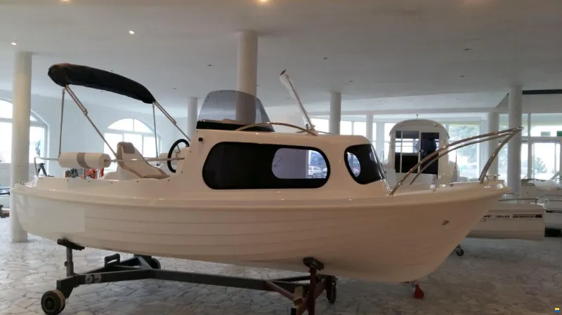 Bateau neuf en cours de préparation, Bateau à cabine