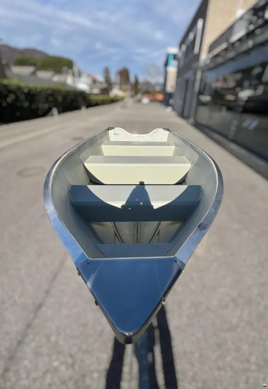 Colore Hempel light grey primer, tappo di scarico dello specchio di poppa, golfaro a prua, panche con rivetti incrociati, piastra di rinforzo in alluminio sulla traversa, angolo di prua e posteriore arrotondato per facilitare il trasporto della barca, 2x maniglie per traversa.