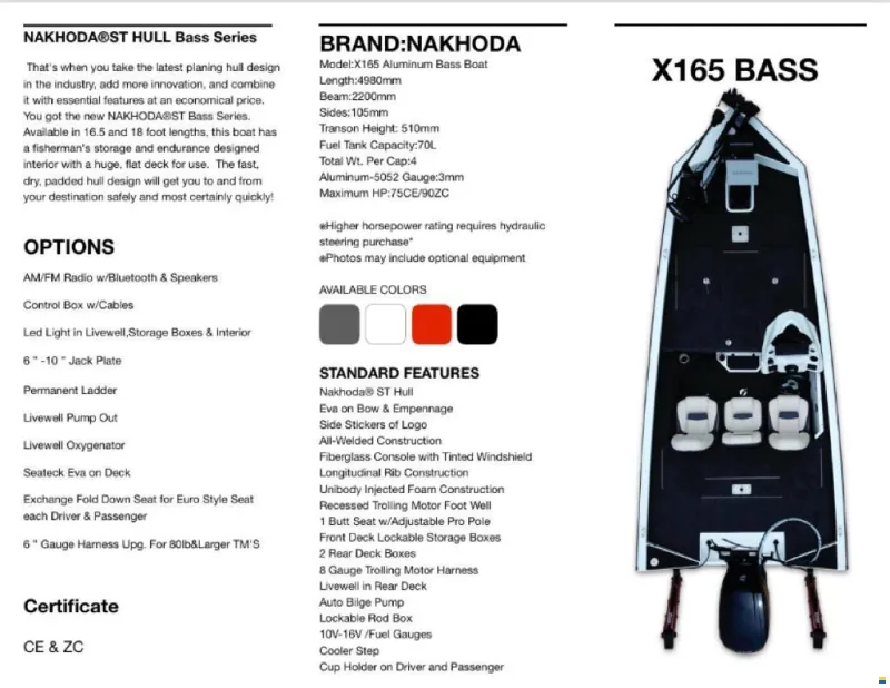 Le X165 de Chez NAKHODA est un Bassboat en Aluminium de 16.5ft