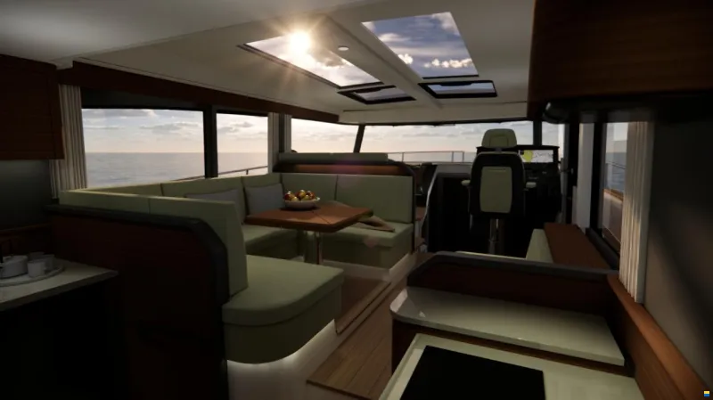 Coussins à l'intérieur, sur le pont arrière et le flybridge