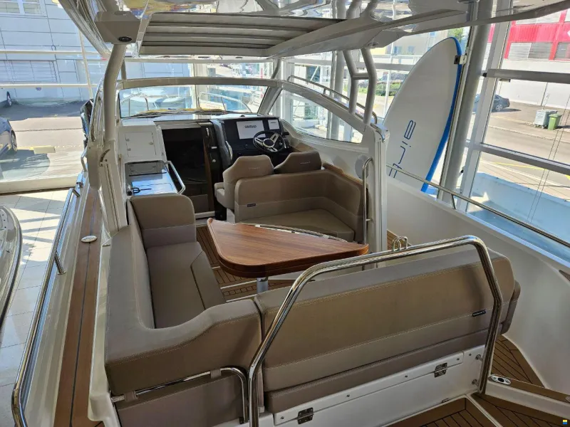 Außenborder Mercury Verado Benzin 300 PS- 8 Zylinder - weiß Mercury Upgrade Paket - 1st Mate - Marine Safety & Security System inkl. mobile VesselView T-Top, Stoffdach elektrisch + Camperverdeck inkl. Seitenteilen, Silbergrau Rumpffarbe weiß Spradling Diamond Taupe & Silvertex Taupe, beige Fender-/Festmacherpaket Antifouling inklusive Osmose Schutz, freie Farbwahl Ankerwinde Bug, Lewmar V700, 7,5kg, 25m Kette Wasserskibügel (nur bei Außenborder, bei Innenborder Zugöse standard) Heiz- / Entfrostersystem Webasto AT3900 inkl. 11,5L Dieseltank (nur Außenborder) Heißwassersystem, Isoterm 15L (nur mit Landanschluss) Landanschluss, 25 Amp System und Ladegerät mit 2x230V Steckdose Jalousie Luke Vorschiff, Fliegengitter + Verdunklung Unterwasserbeleuchtung blau Grauwassertank (notwendig für Bodensee & schweizer Seen) Suchscheinwerfer Hecktür Gangbord Kabellose Handyladestation Nimbus Geschirrset Panty mit Corianoberfläche inkl. Waschbecken & Kühlschrank Gasherd HIFI Paket High-End Simrad Plotter, Go 12" Simrad Sonar, xSonic SS60 Eco Teak, Deck & Cockpit Kabinenpolster, Sunbrella Nat Heater Chalk Cockpitpolster Sonnenkissen (inkl. Abdeckung) Scheibenabdeckung Sonnensegel Vorschiff