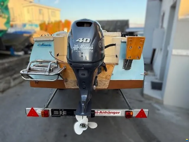 Klassisches Motorboot mit Yamaha 40 PS (1. IVS 05.2018). Mit Bootsblache, Sonnendach, Badeplattform mit Badeleiter, Stüssi Trailer. Das Boot kann auf Absprache zu Werftöffnungszeiten (Mo - Fr, 8-12 / 13-17Uhr) besichtigt werden. Kein Wasserplatz im Angebot.