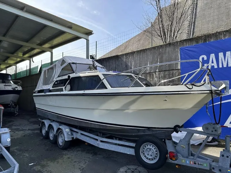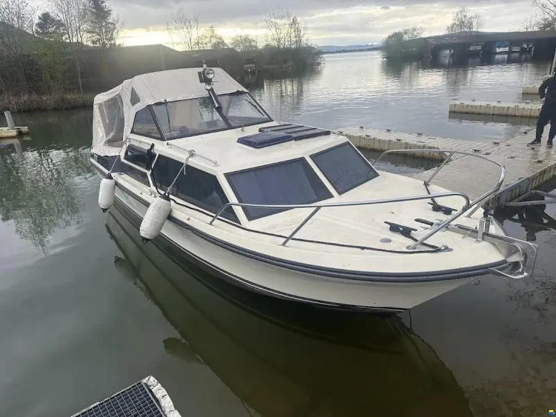 Ce Scand 26 HC de 1989 est une pièce authentique de construction navale norvégienne – robuste, spacieux et conçu pour de longs étés sur l’eau. La coque blanche en PRV aux lignes épurées porte la signature typique des chantiers navals scandinaves : pratique, marin et durable.