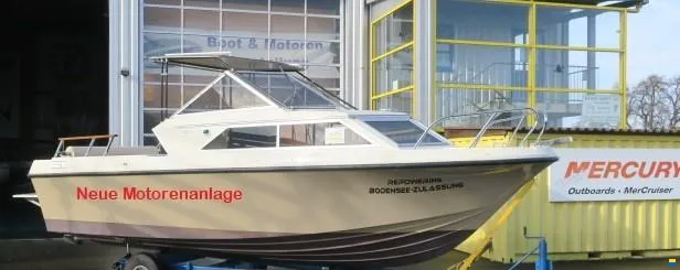 Die Motorenanlage, Z-Drive, Schaltbox, Lenkung, Armaturen, Kabelsatz und Propeller sind Fabrikneue Modelle! Der Bootskörper poliert oder neu lackiert und der Unterwasser-Schutzanstrich neu aufgebaut.