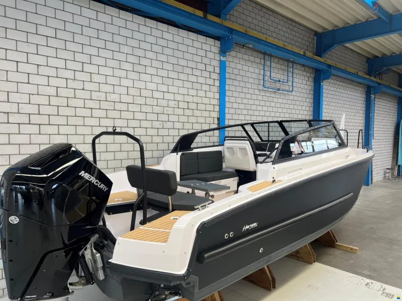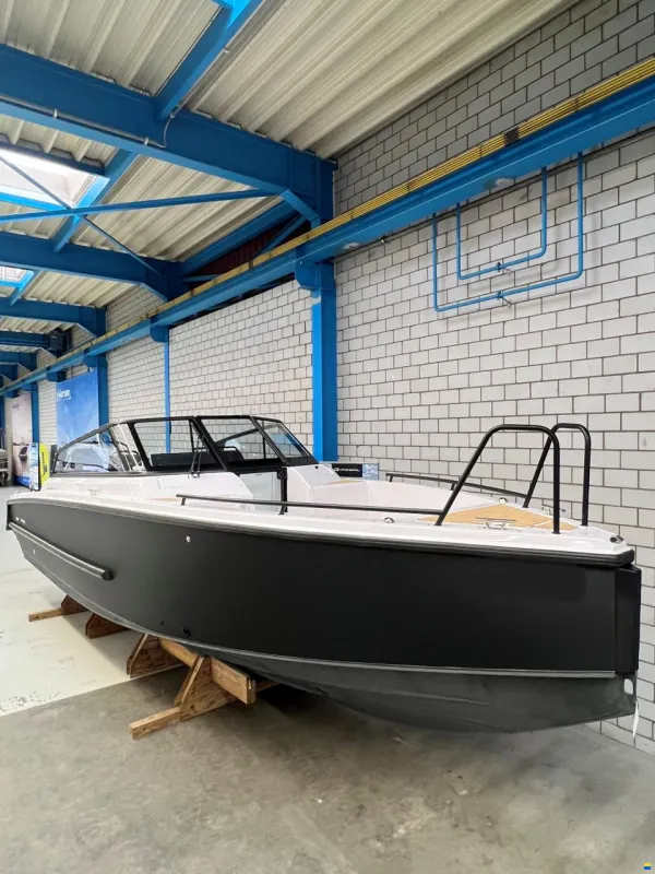 Farbe: XO Classic (Rumpf schwarz, Deck weiss, Plasdeck biscuit, Reling schwarz, Polsterung dunkel), Elektrisch- Hydraulische Lenkung, Bugfender, Scheibenwischer Steuerbord, Dopelbatterieanlage, Gefenderter Fahrersitz verstellbar (XO Exclusive), Kartenplotter Simard NSS 12'' Evo3, Simrad HDI Echolot, MenteMarine Trimmklappensystem automatisch, Bugstrahlruder, Ankerwinde elektrisch mit Leine, Kette & Edelstahlanker, Plasdeck Design auf Deck, D-Leiste auf der Seite des Rumpfes (1/2 Länge), Bodenbeleuchtung weiss, Hecksitzbank mit Polster, Wasserskibogen, Abnehmbare Seitensitze auf dem Achterdeck 2 Stück, Antifouling schwarz, Fusion Stereo mit 6 Lautsprechern inkl. Bluetooth, Zusätzliche 12V-Steckdose, Tisch auf Achterdeck, 2 Matratzen auf den hinteren, seitlichen Bänken, Bugabdeckung, Cockpitpersenning, Kartenmodul für Kartenplotter