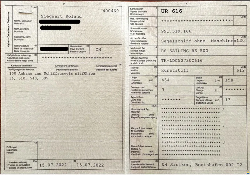 - Zusätzliches Gross- und Vorsegel (ungebraucht)